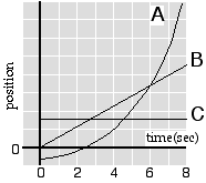 (positive) acceleration is A. Plot C denotes zero velocity, and plot B