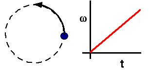 A mass moves in a circle with uniformly increasing anglular velocity.