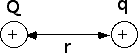 Two positive charges, Q and q, are positioned as shown in the diagram.