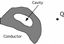 A positive charge +Q is placed outside a neutral conductor. Inside the
