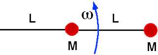 The rotational inertia of the dumbbell (see figure) about axis A is