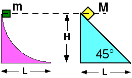 - The time it takes for M to reach the end of the incline is less because its horizontal acceleration is larger.