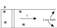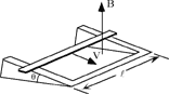 angle q. A constant B field is directed vertically upward.