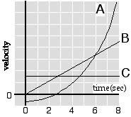 plot of velocity versus time is shown at right for three objects. Which