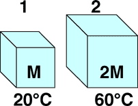 different masses and, initially, different temperatures as shown. If the