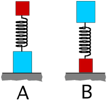 mass is proportional to the size of the block. The spring is compressed
