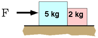 Two blocks rest on a frictionless surface. Both blocks move to the right